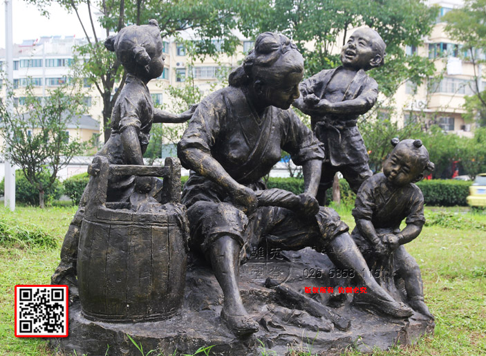 民間小型成品系列現貨玻璃鋼雕塑,阿炳、放電影、喝混沌、浣衣女、成品真人比例