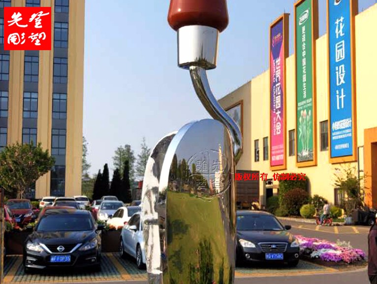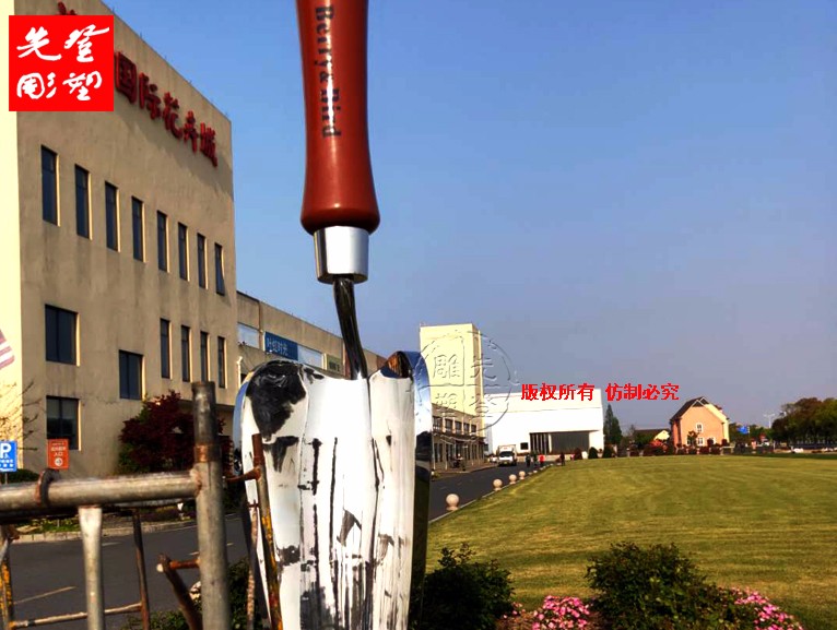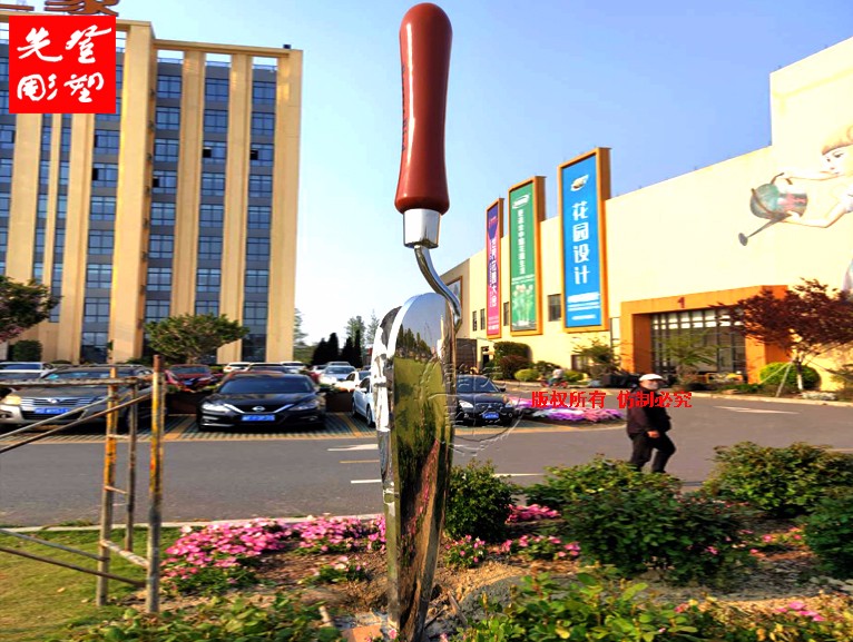 園藝不銹鋼雕塑, 園藝用具鏟子雕塑,鏟柄做不銹鋼油漆工藝,鏟頭和鏟身做不銹鋼鏡面藝。