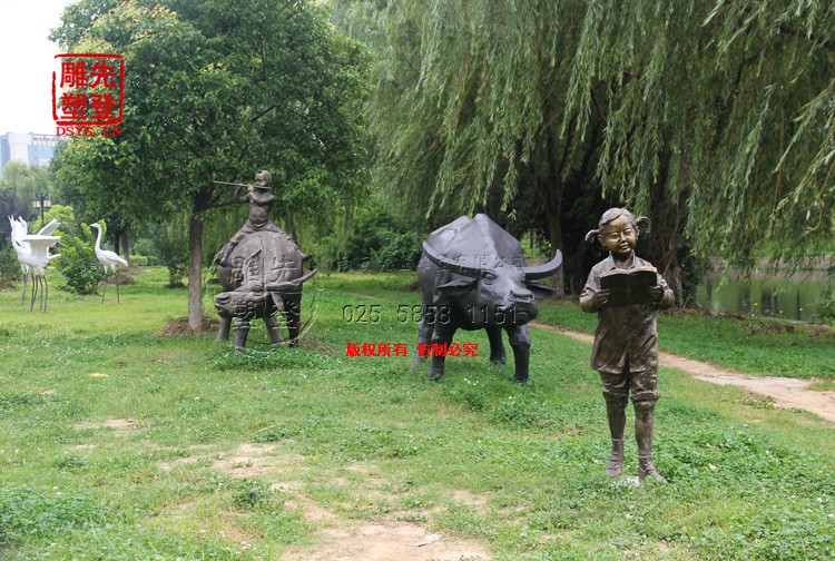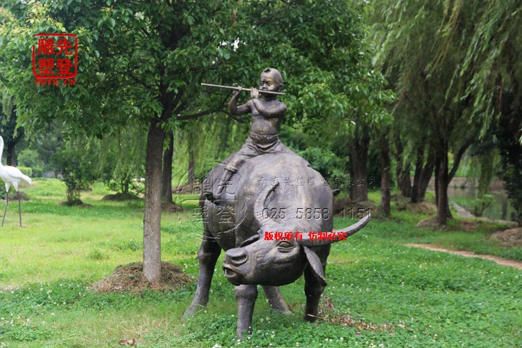 牛雕塑,牧童騎牛雕塑