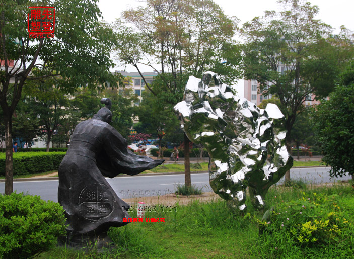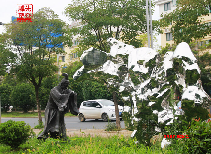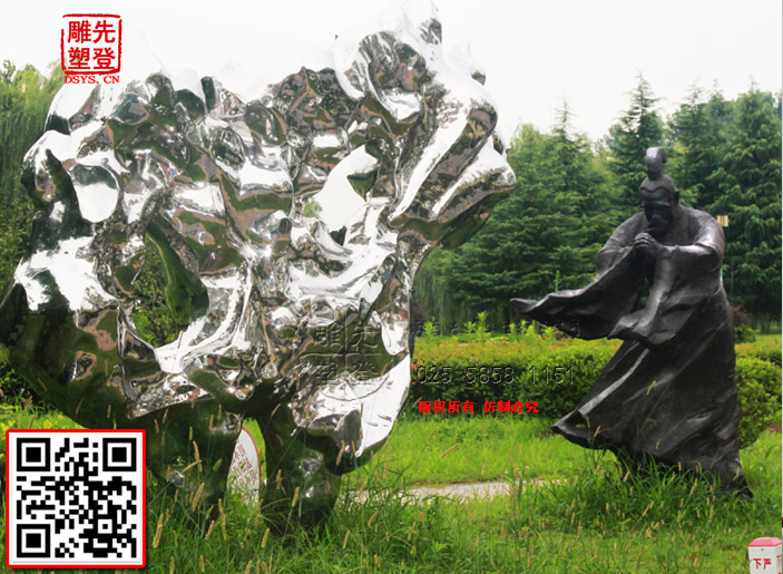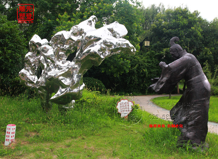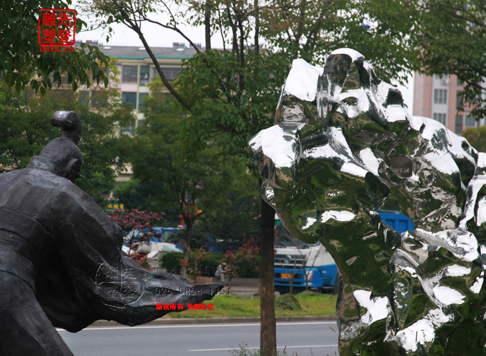 米芾拜石太湖石鏡面光雕塑現(xiàn)貨人物銅雕