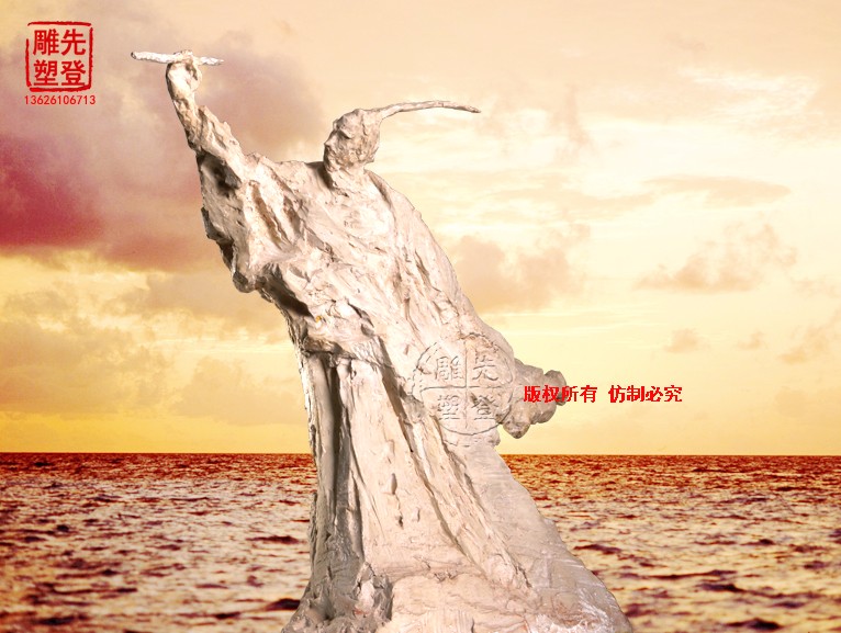 我們今天再看屈原,拋開歷史背景,藝術(shù)家通過雕像,向我們傳達了一種怎樣的思想,張開雙臂,仰天長嘯,試問蒼天。我們已然不再糾結(jié)于事物的形體,藝術(shù)家將我們帶到了屈原的思想深處,他的愛國情操、報國無門,悲憤的心情在他的詩歌里奔騰不息,氣勢恢弘,“舉世皆濁我獨清,眾人皆醉我獨醒”他唯有仰天長嘆,試問蒼天,何物才能承載如此悲壯的情感。萬籟俱靜,唯有漫漫滄水似在傾聽。我們在深深震撼的同時不得不折服于藝術(shù)家的巧奪天工,在他的堅韌與悲壯中,歷史的長河撞擊著我們的心靈。